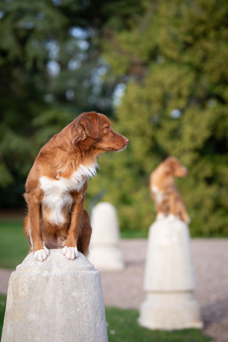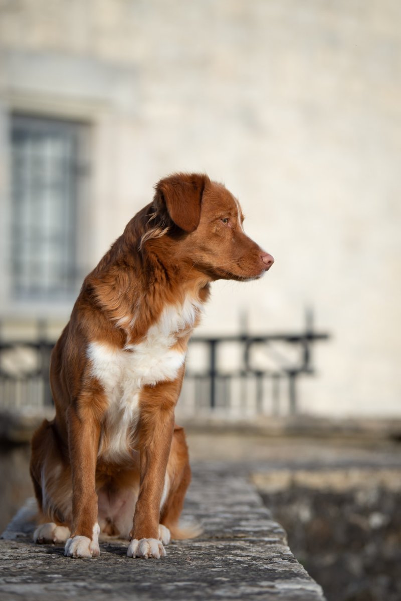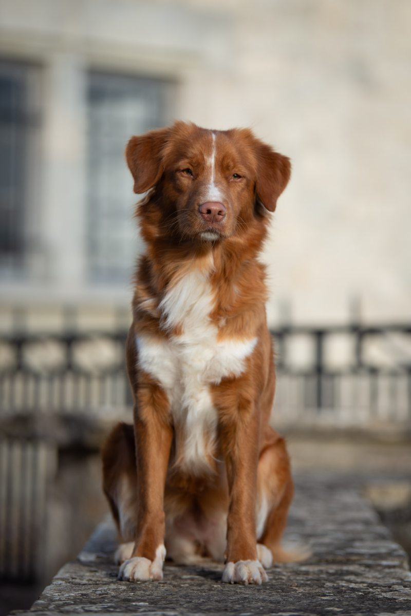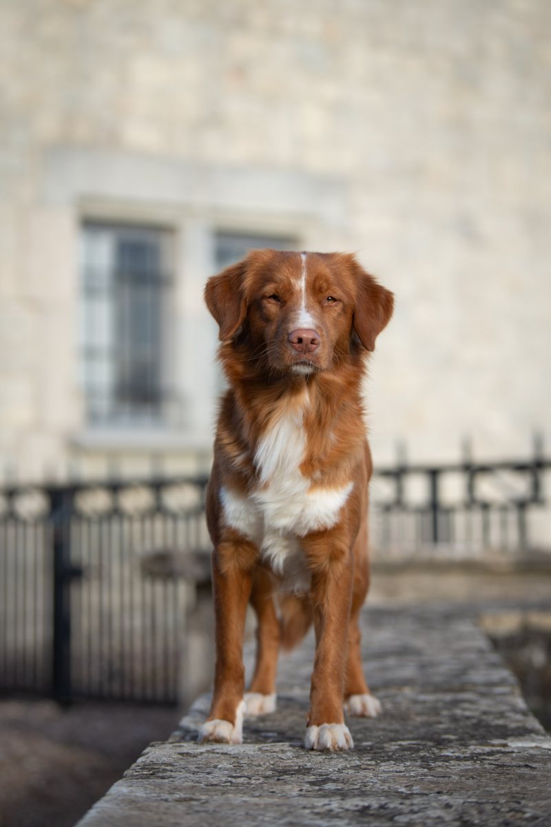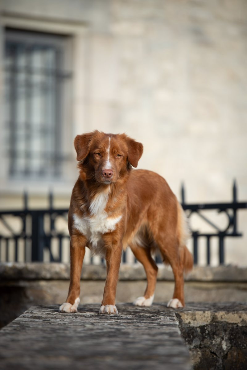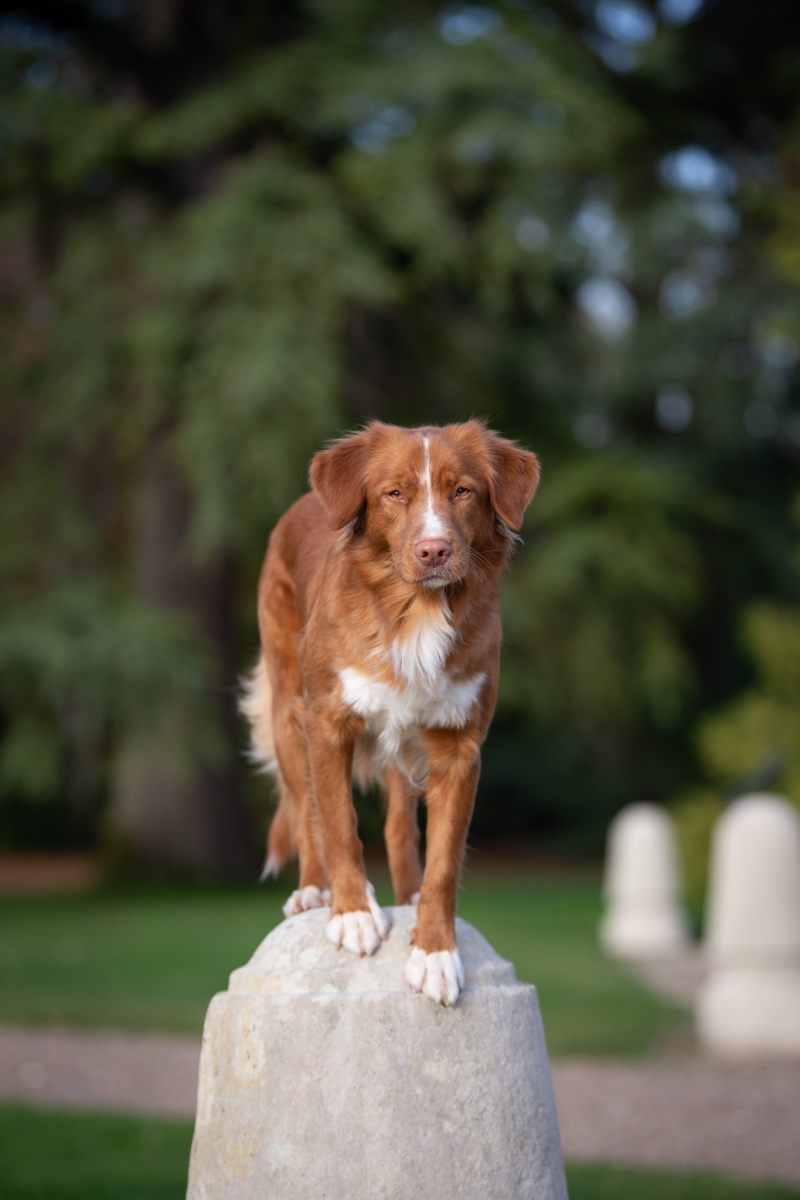 Couleur : roux et blanc Taille : 45 cm Poids : 17 kg