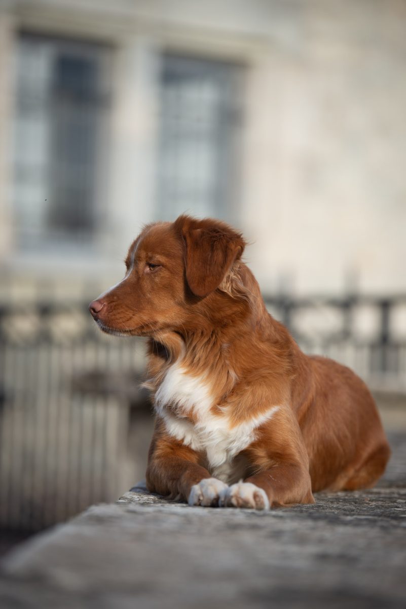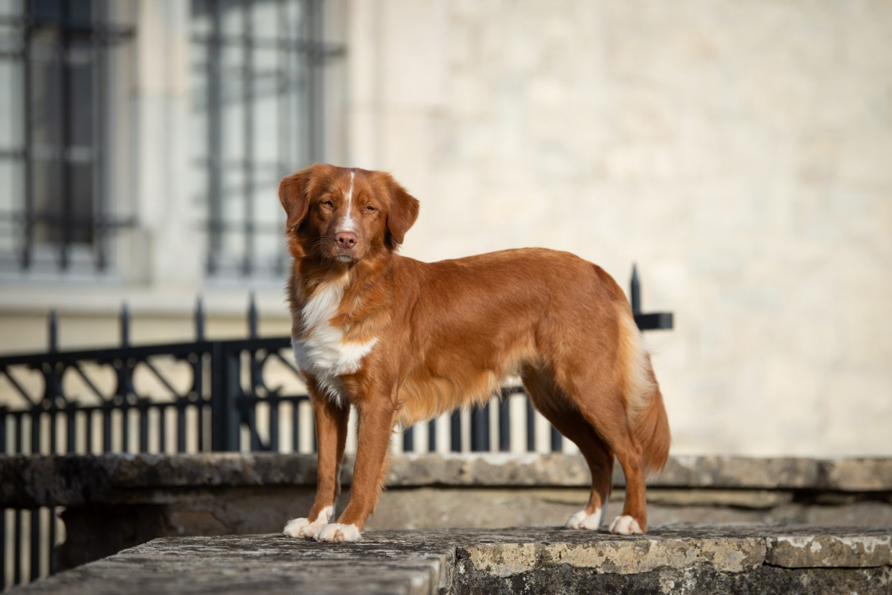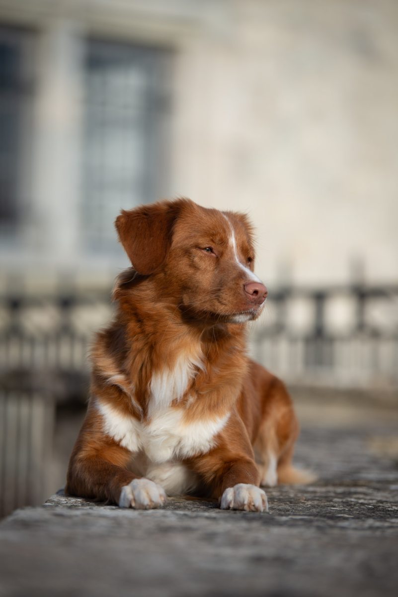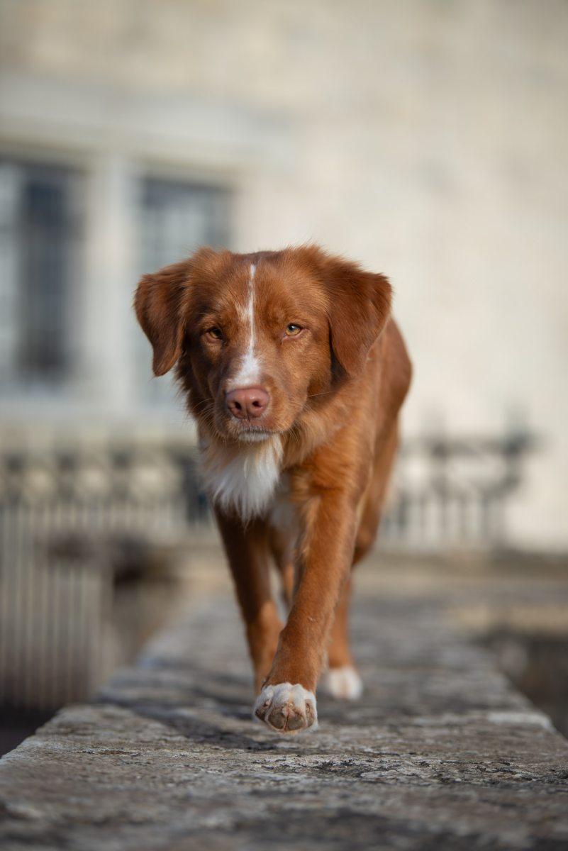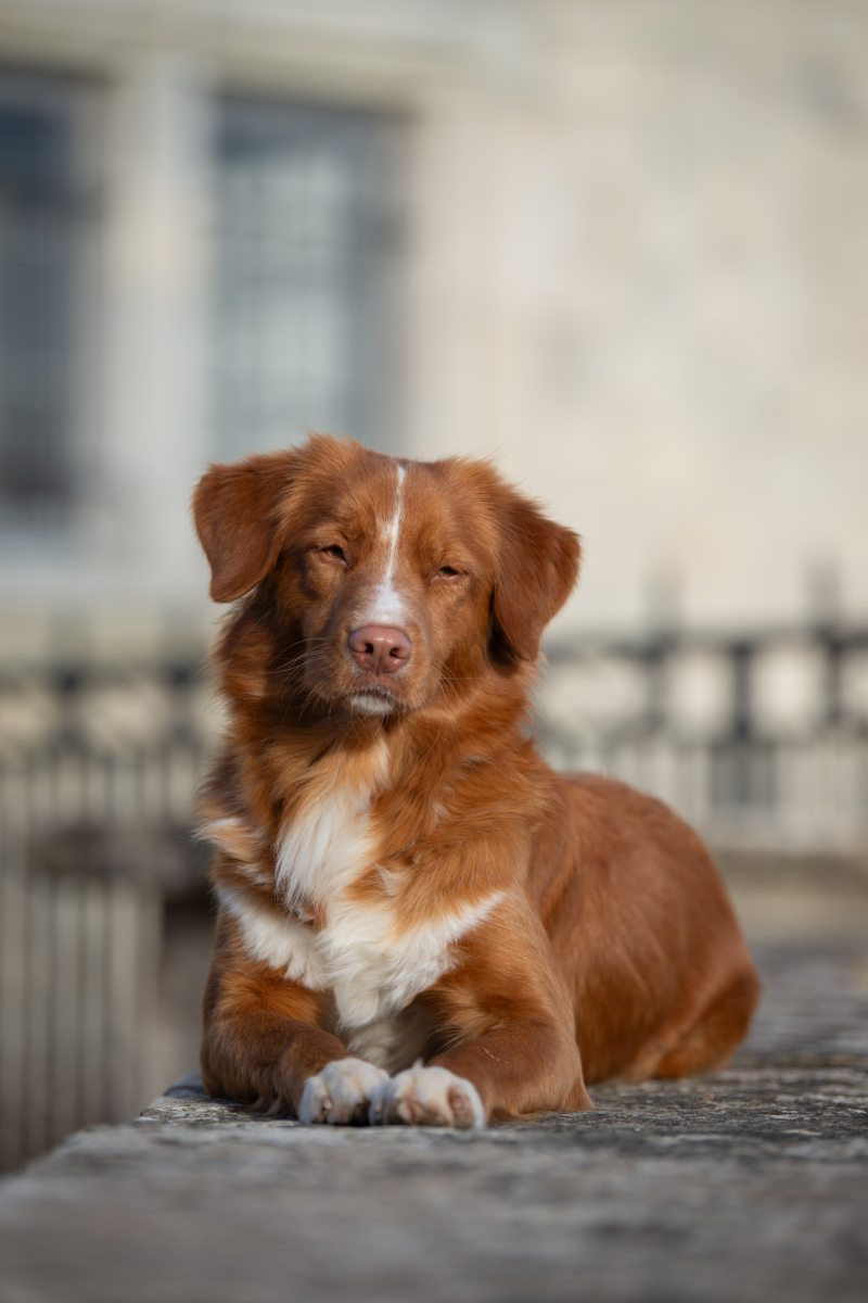 Couleur : roux et blanc Taille : 45 cm Poids : 17 kg